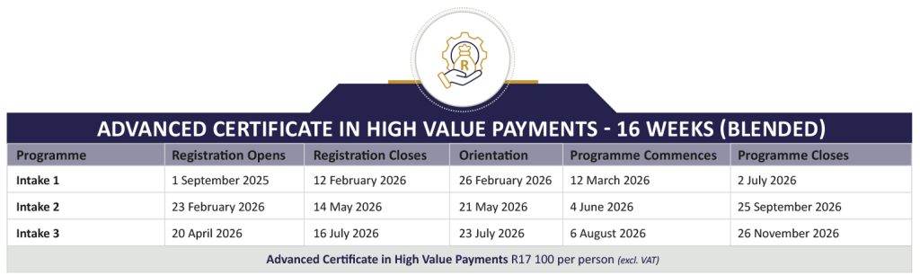 Welcome to the PASA Academy Advanced Certificate in High Value Payments, an integral part of PASA’s comprehensive suite of educational offerings. This programme builds upon the foundational knowledge acquired through the Certificate in Foundational Payments, which serves as a prerequisite for enrolment.